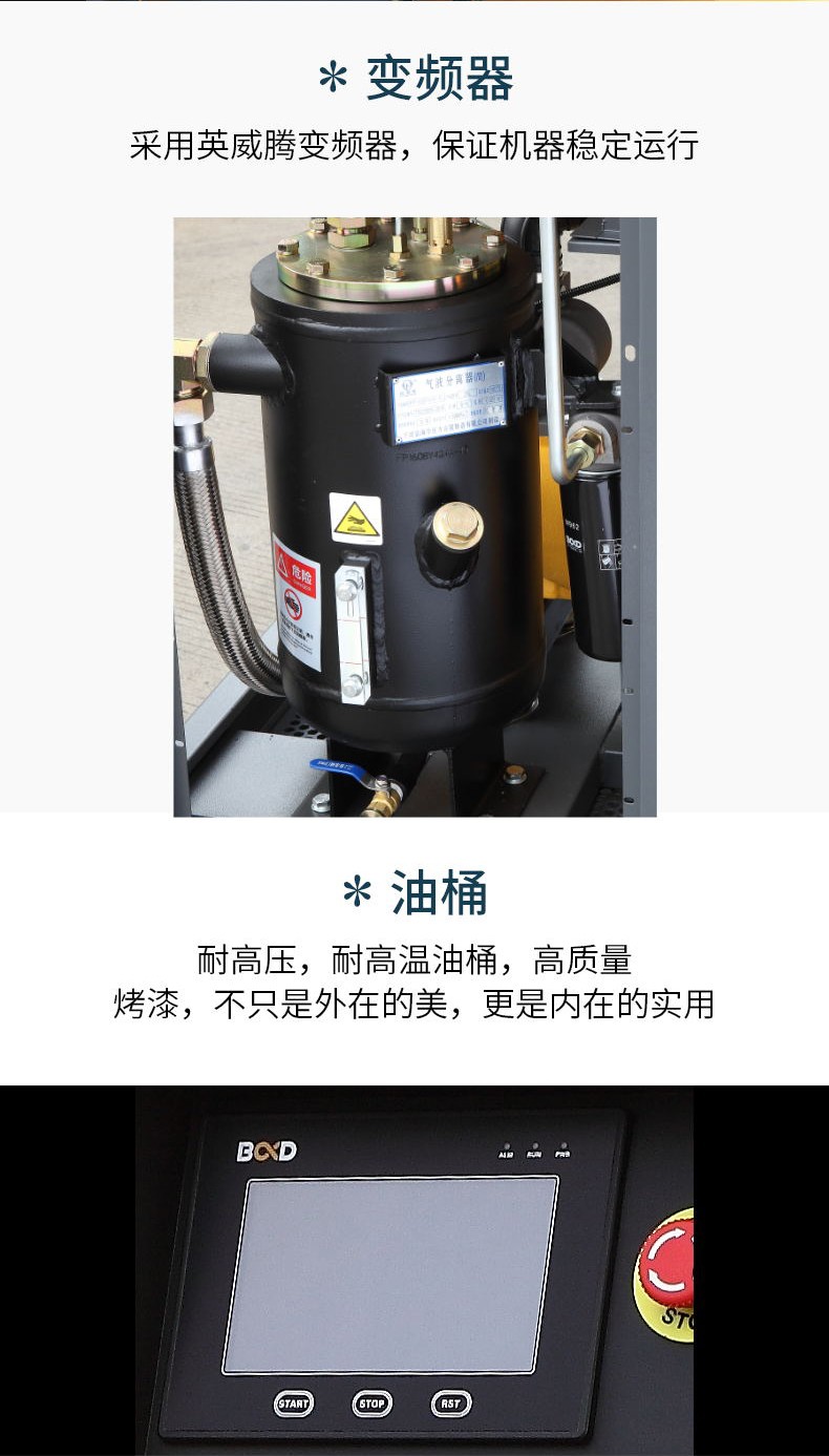 葆德低壓空壓機小電機大排量,智能變頻技術,型號:BD-750LPM、BD-1100LPM、BD-1560LPM、BD-1900LPM、BD-75LPM-Ⅱ、BD-100LPM-Ⅱ、BD-125LPM-Ⅱ、BD-150LPM-Ⅱ、BD-175LPM-Ⅱ、BD-250LPM-Ⅱ、BD-300LPM-Ⅱ、BD-350LPM-Ⅱ